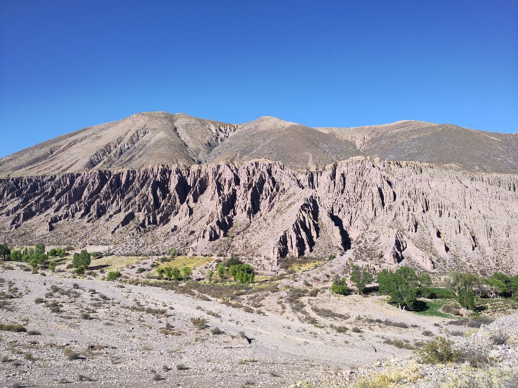 Die Berge und ihre Beschaffenheit ändert sich ständig. Mal erinnern ihre Formen an Tröpfelburgen, mal eher an Bauschaum. Durch bunte Erden schlängelt sich die Quebrada de Humahuaca durch's Tal.